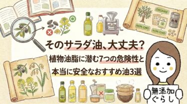 毎日何気なく使っている「サラダ油」や「植物油脂」。実はトランス脂肪酸やヘキサン抽出など、健康を脅かす7つのリスクが潜んでいるかも?この記事では、避けるべき危険な油の裏側と、毎日安心して使える本当におすすめの油(オリーブオイル・米油・菜種油)3選をわかりやすく解説します!