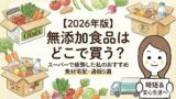 一つのスーパーや店舗で無添加食品を買い揃えるのは難しく手間もかかるので、無添加の食品を購入できるおすすめの通販サイトを下記の記事にまとめています。