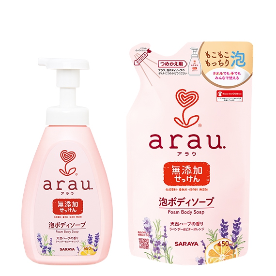 こちらも「石けん成分」がメインの「arau 泡ボディソープ」です。