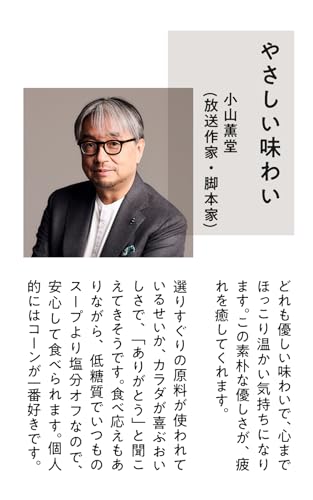 とうもろこしの甘みと生クリームのコクがマッチした、やさしい味わいです。「砂糖」や「チキンエキス」は使用されていますが、スーパーで手軽に買える無添加スープとしてはコスパ抜群。粒々コーンも入っていて満足感があります。