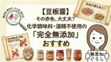 様々な「無添加食品や商品」をまとめた記事です。添加物や化学合成物質が気になる方は、是非ご覧ください↓