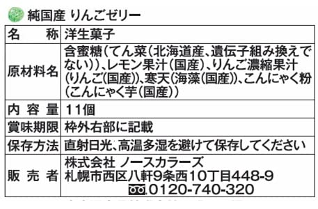 - 原材料: りんご果汁(国産)、てん菜糖(北海道産)、寒天、こんにゃく粉