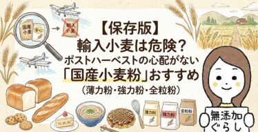 「小麦粉の農薬(ポストハーベスト)が気になる…」そんな方へ。無添加歴15年の管理人が、安心して食べられる「国産小麦粉」を厳選。普段の料理に使える薄力粉から、パン用の強力粉、栄養満点の全粒粉まで、用途別におすすめ7選を紹介します。