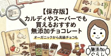 スーパーやカルディ、成城石井などで買える「無添加チョコレート」11選をご紹介!乳化剤・香料不使用、オーガニックなど、美容と健康にうれしい板チョコを厳選しました。100円台で買える比較的安心な市販チョコもあわせて解説します。